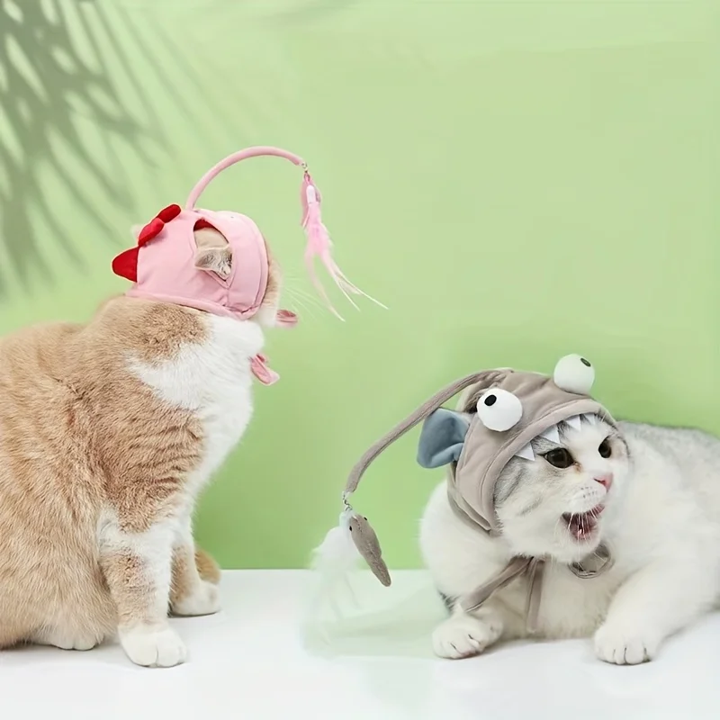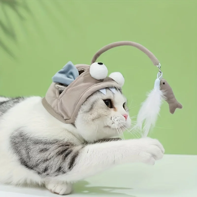ENTERTAINING CAT HAT WITH TOY STRAP
